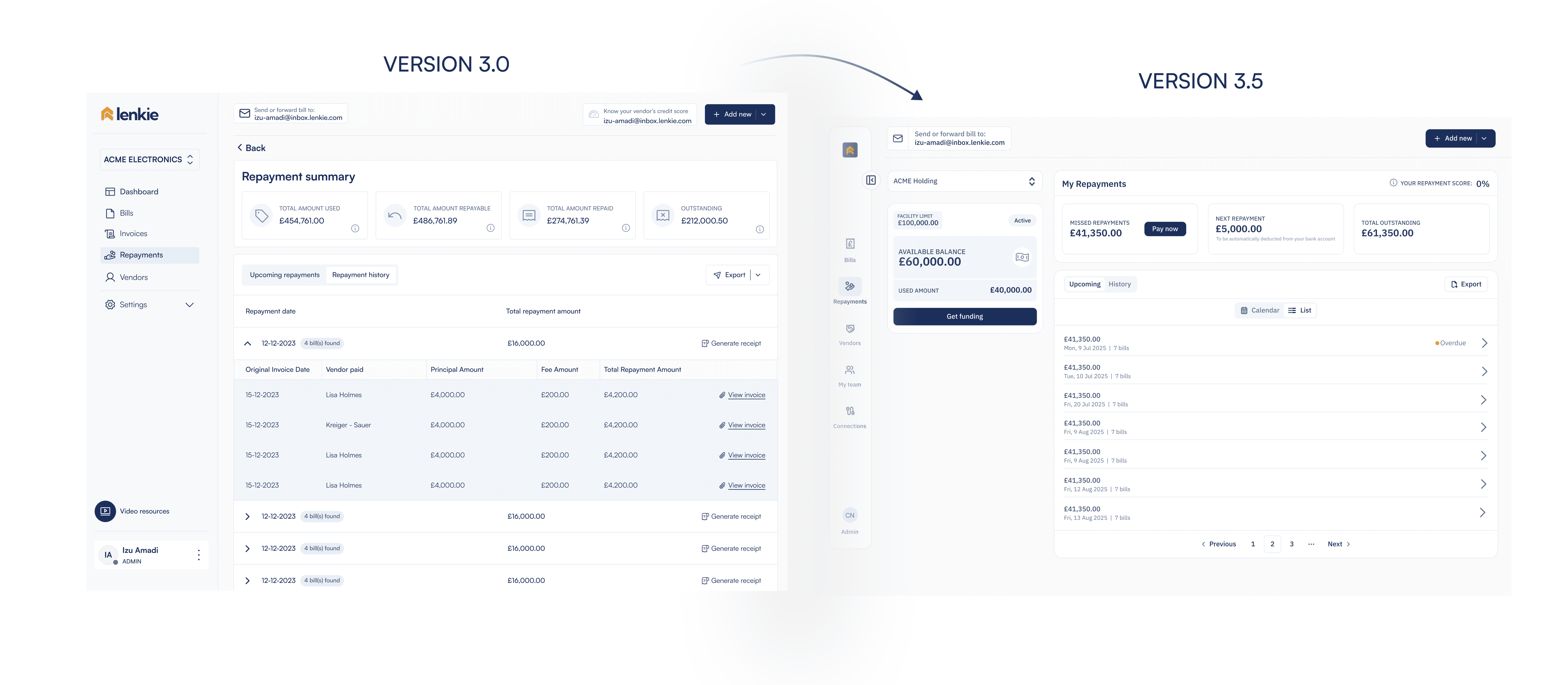 Lenkie offers credit facilities that allow small businesses to pay suppliers upfront and repay over time. As the product matured, the dashboard had gone through several incremental updates, which introduced inconsistencies in how repayment information was structured and surfaced.